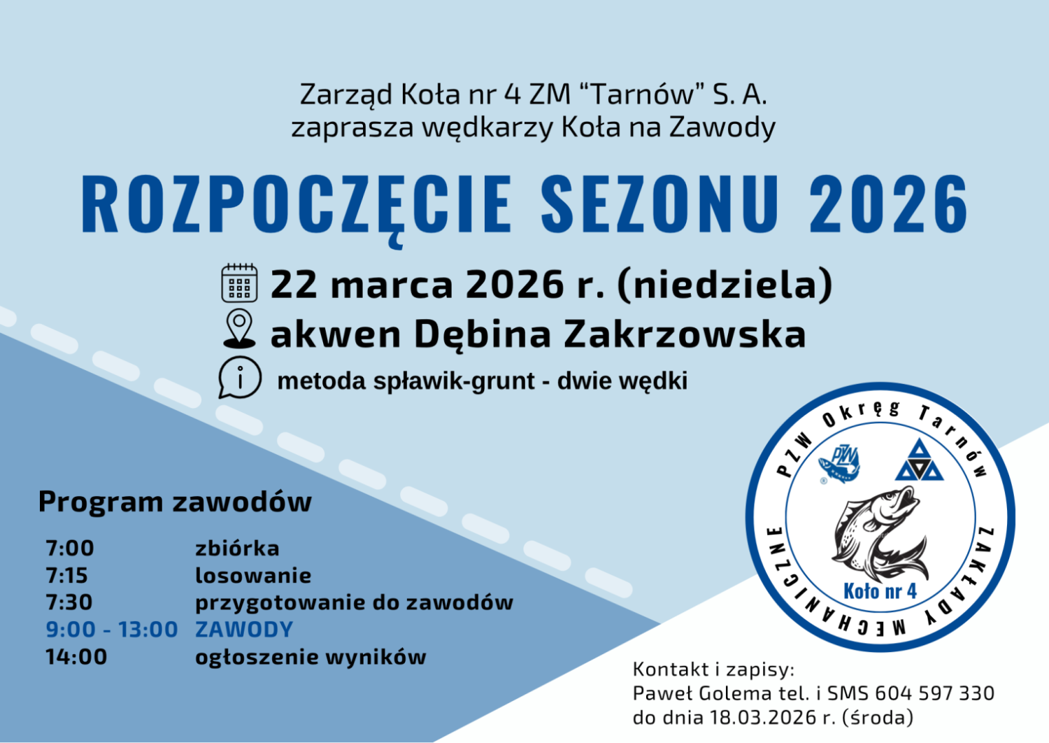 Zawody Rozpoczęcie Sezonu Wędkarskiego 2026